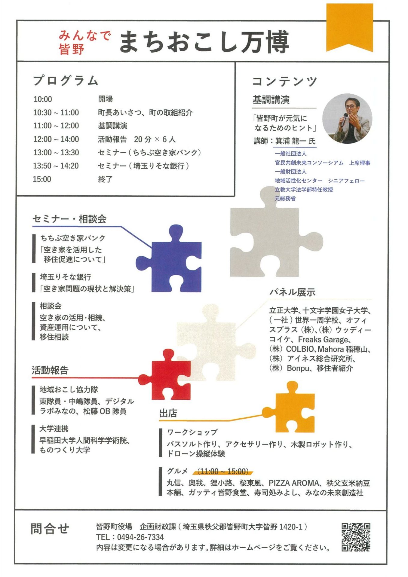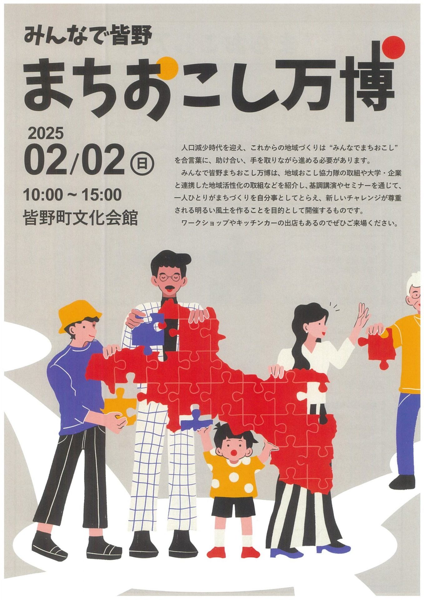 日時:2月2日(日)時間:10:00~15:00場所:皆野町文化会館
