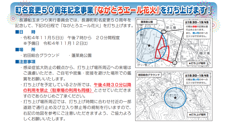 下記の日程で「ながとろエール花火」を打ち上げます!