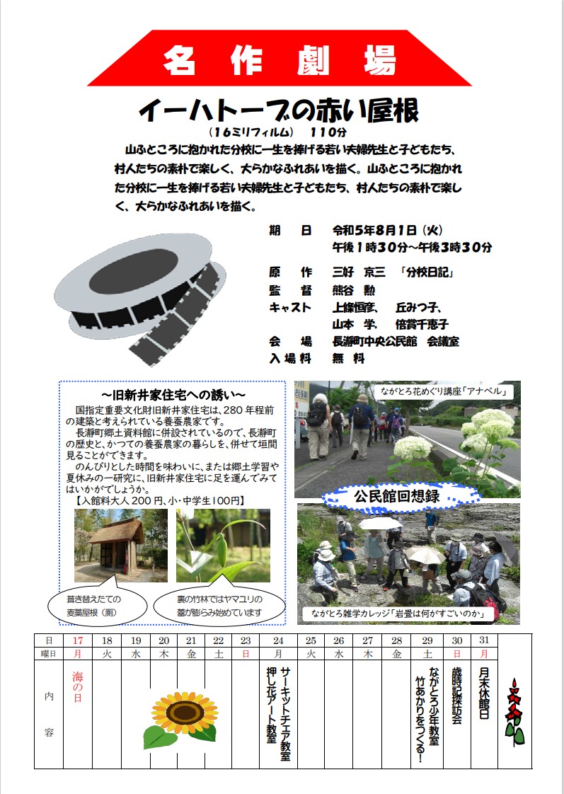 是非、長瀞中央公民館に足を運んでいただき、一緒に夏の上映会を楽しみましょう!