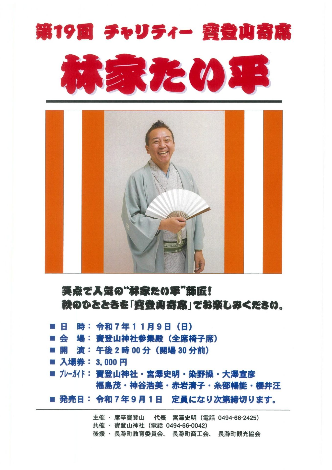 【長瀞町】第19回チャリティー寶登山寄席のお知らせです🎤
