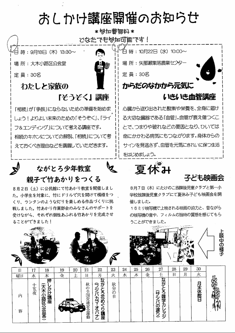 さて本日は中央公民館勤労青少年ホームからのお知らせです。