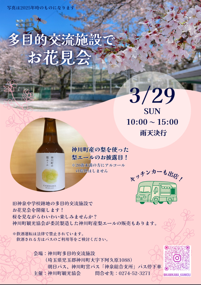 さらに、神川町産梨エールの販売も行われるとのことです🍺桜を見ながら皆さんで楽しみませんか?😊