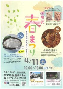 とろみんネットご覧の皆様、こんにちは!ヤマキ醸造にて春まつりが4月11日(土)10:00~15:00に開催されます😊