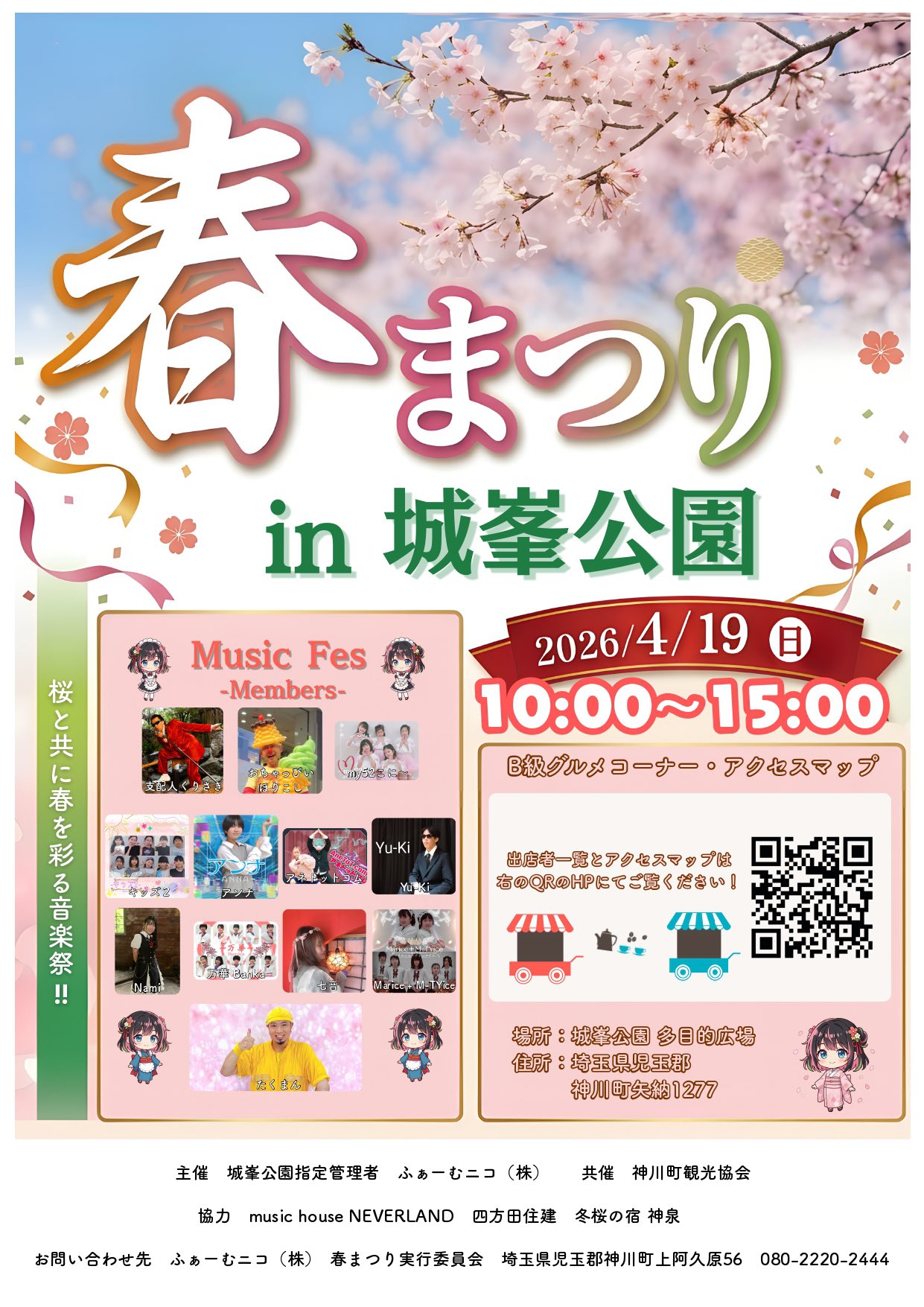 詳細は下記ホームページ・パンフレットをご確認下さい👇「春まつりin城峯公園」を開催します! - 神川町観光協会|花と自然と歴史の町へようこそ