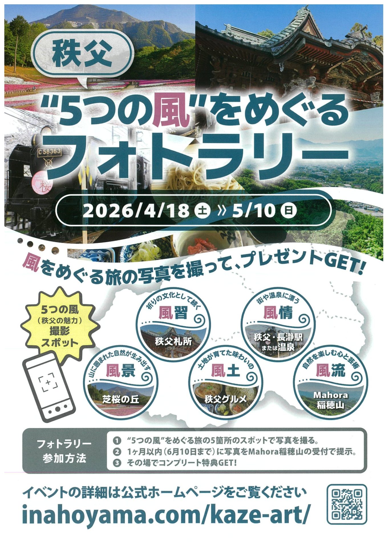 秩父の魅力である五つの風(秩父札所や芝桜の丘など)の写真を撮ってプレゼントをゲットしょう!