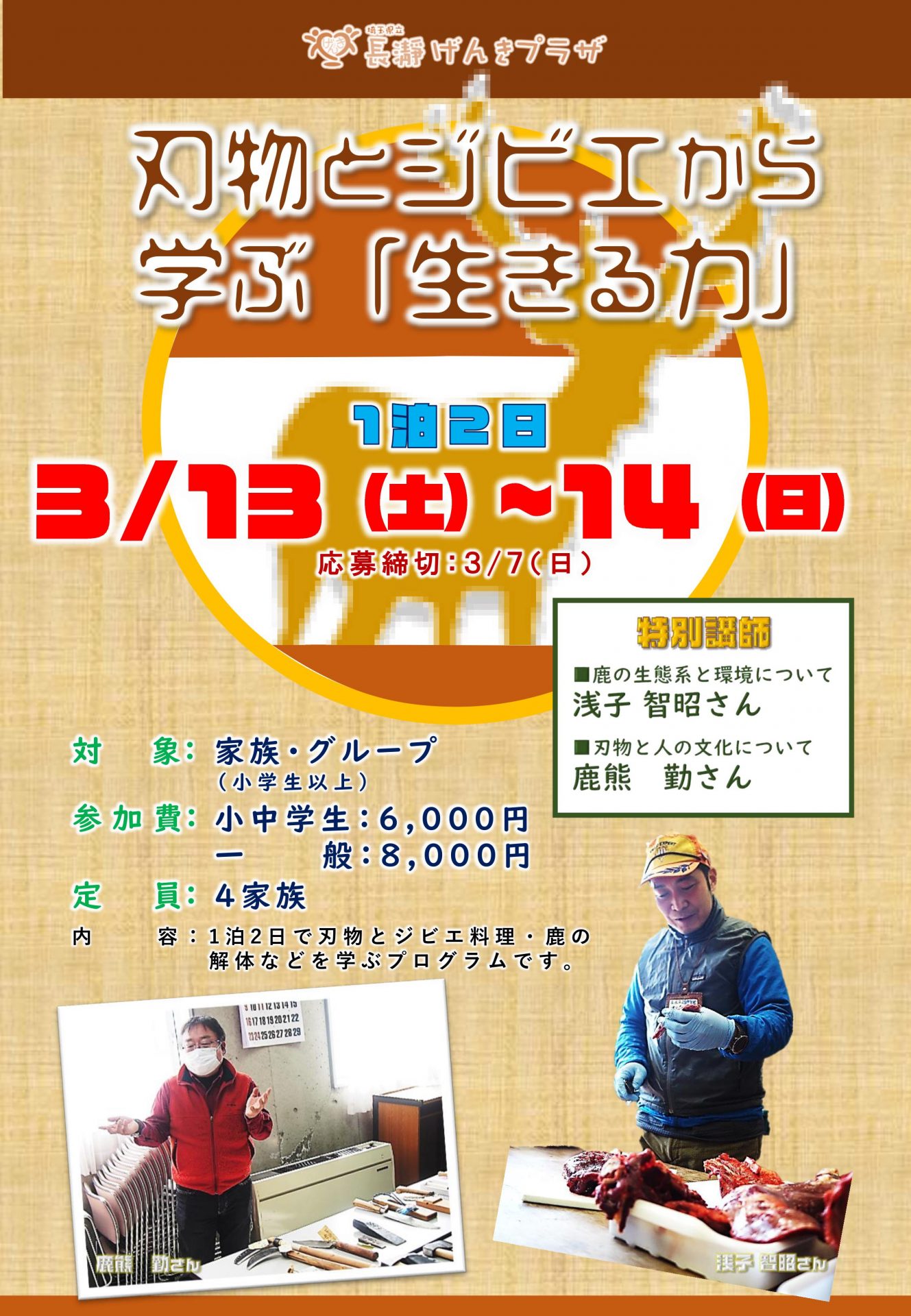 【内容】1泊2日でジビエ(野生鳥獣などの狩猟肉)やナイフなどの刃物を使用して様々なことを学び、