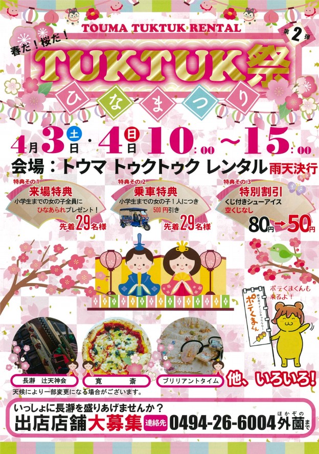春だ!桜だ!「第2弾 TUKTUK祭 ひなまつり」