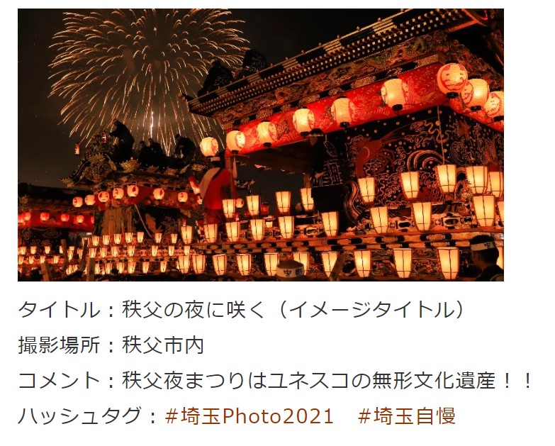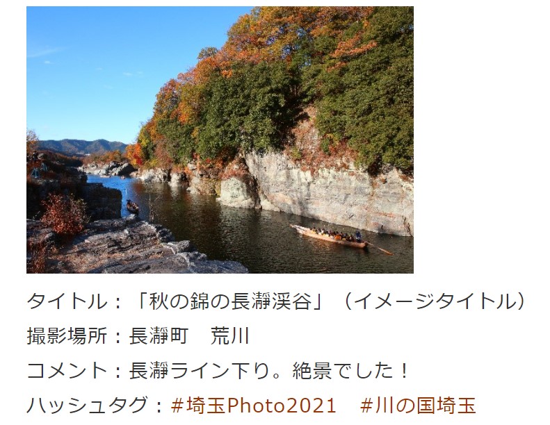 【例:#埼玉Photo2021 + #川の国埼玉 または #埼玉自慢】