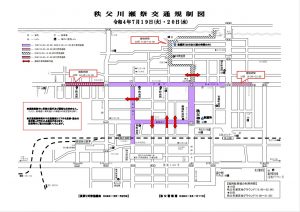 ・山車の曳行ルート等では交通規制が実施されます。当日は迂回のご協力をお願いします。