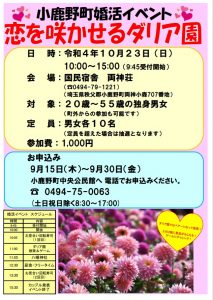本日は小鹿野町で開催される婚活イベント「恋を咲かせるダリア園」
