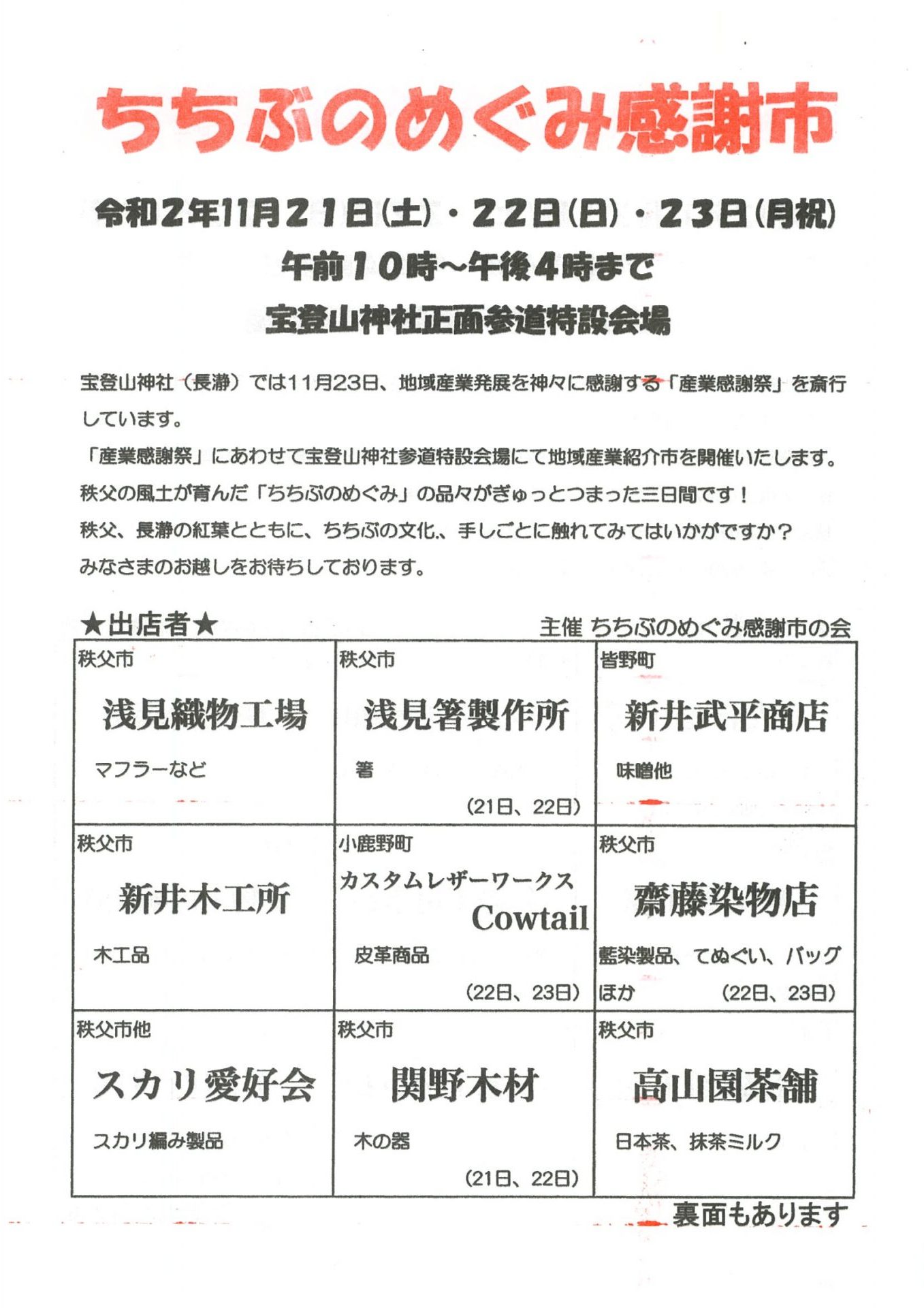 【宝登山神社】ちちぶのめぐみ感謝市 11月21・22・23日開催