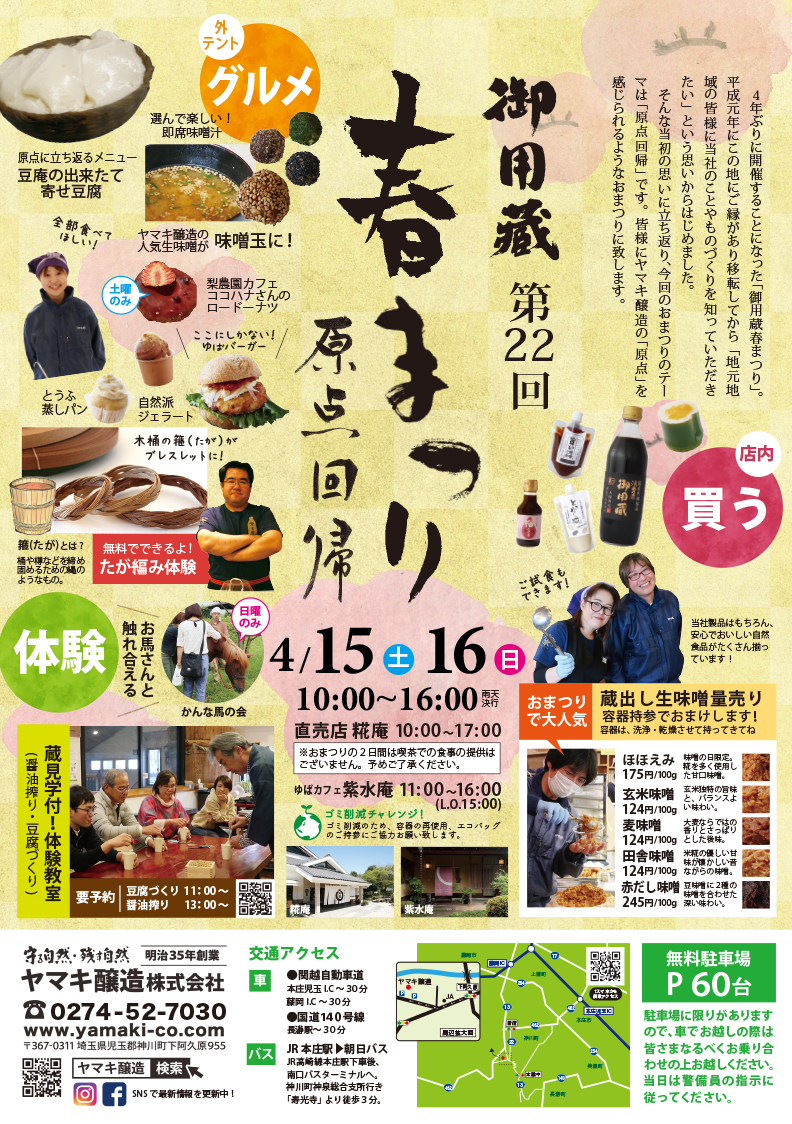 第22回御用蔵春まつりを開催します。 | イベント | 株式会社ヤマキ (yamaki-co.com)
