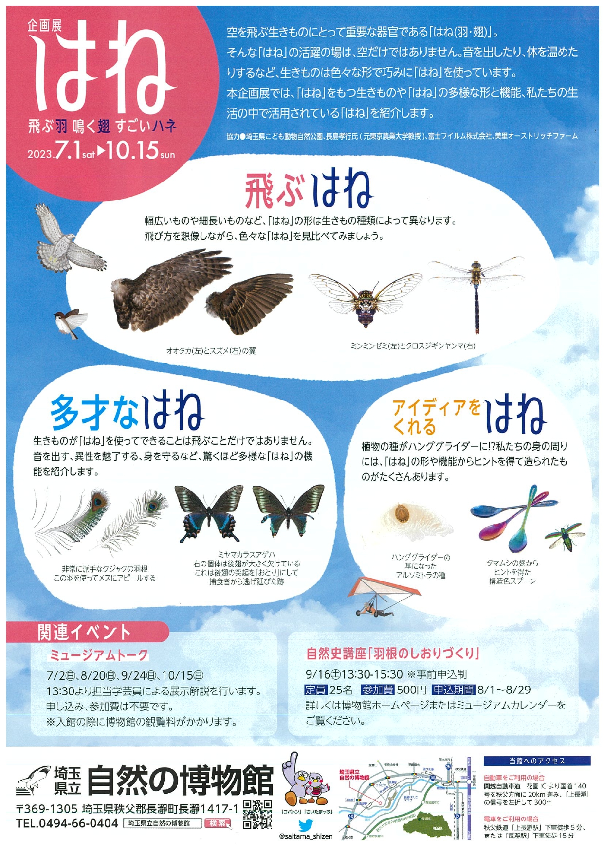 「企画展 はね 飛ぶ羽鳴く翅すごいハネ」