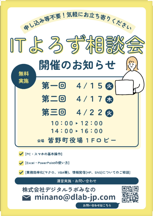 皆野町では、町民を対象としたITよろず相談会を開催します。