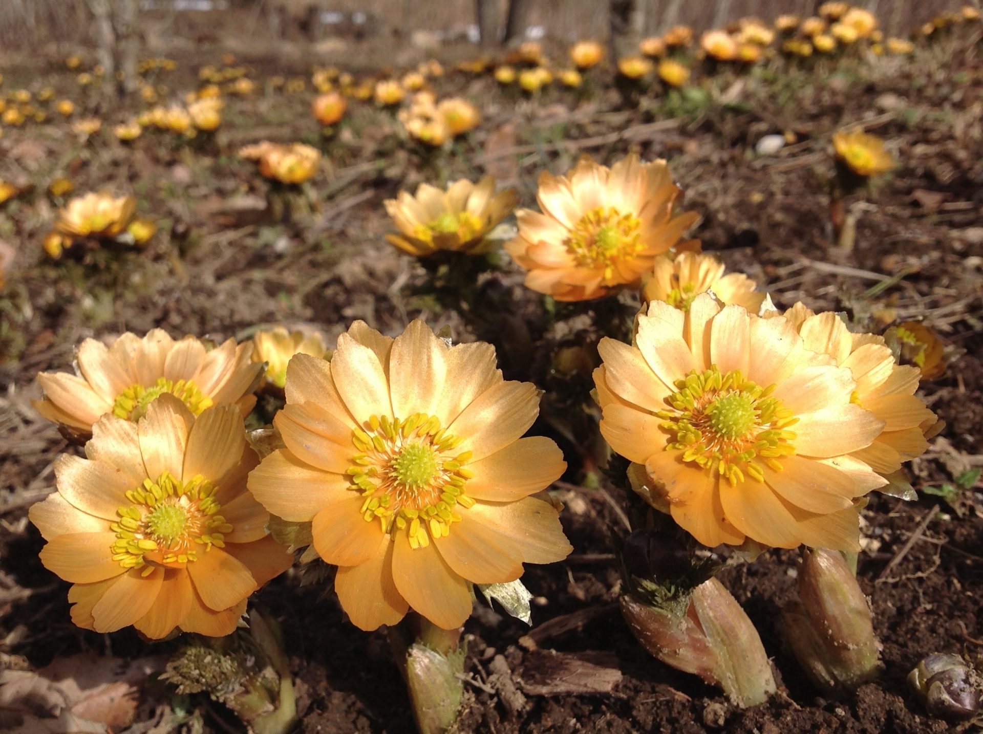 まだ時期が少し早かったのですが、2月中旬になりますと、オレンジ色の福寿草(秩父紅)も開花し始めます。