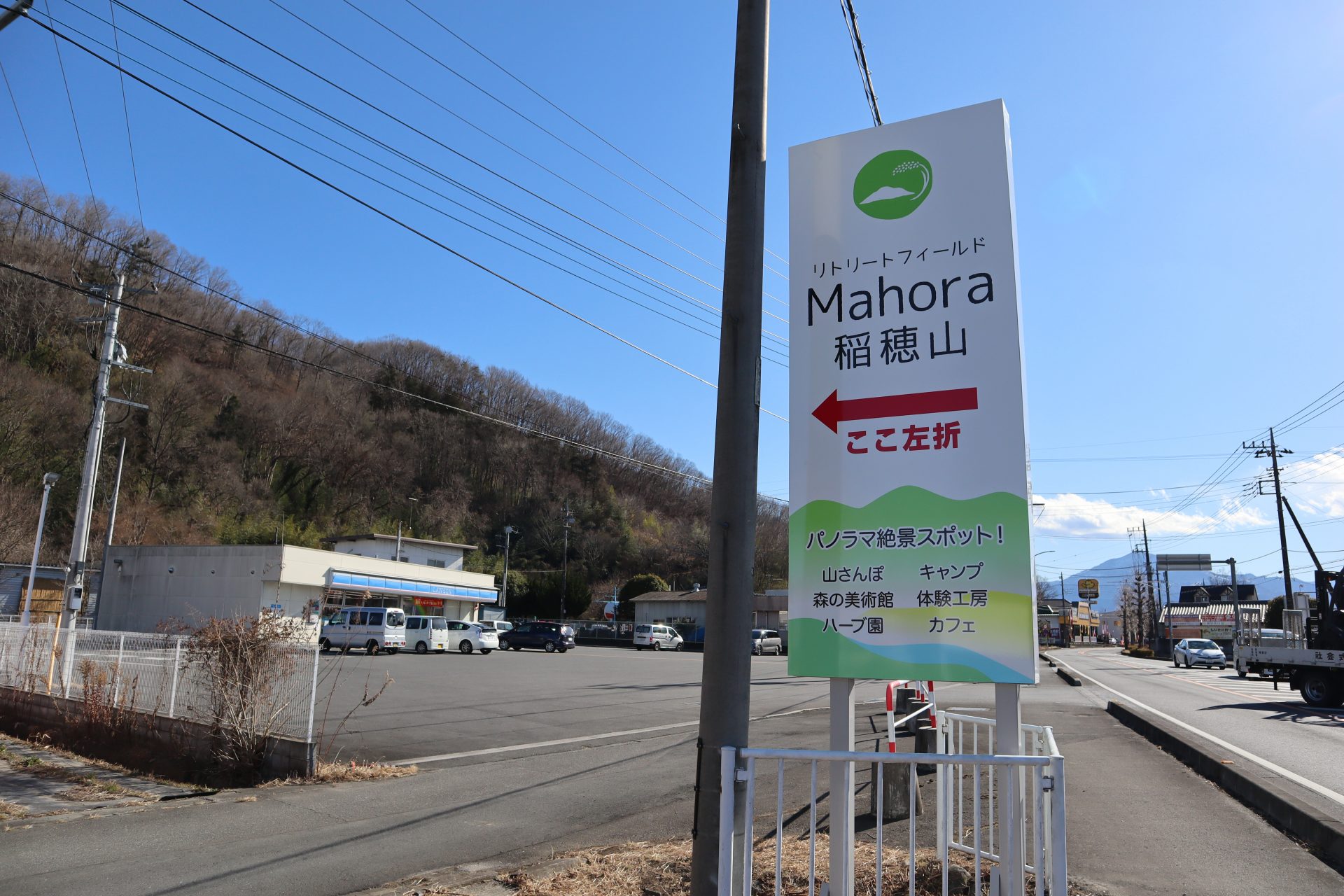 「Mahora稲穂山」の看板がありますので、ここを目印に左折し、道なりに進んでいくと到着します。