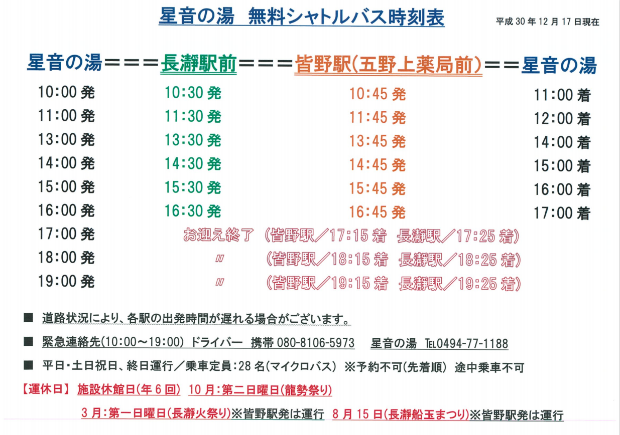 星音の湯さんのシャトルバスは、ほぼ毎日運行しています。