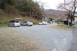 斜めに入り、道を進んで行くと駐車場に出ました。
