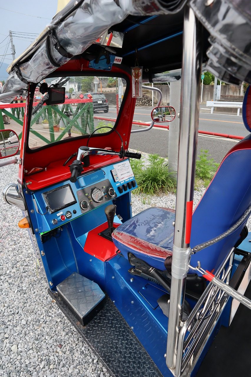 トゥクトゥクは操作方法が一般の車と異なりアクセルは手で、ブレーキは足となります!