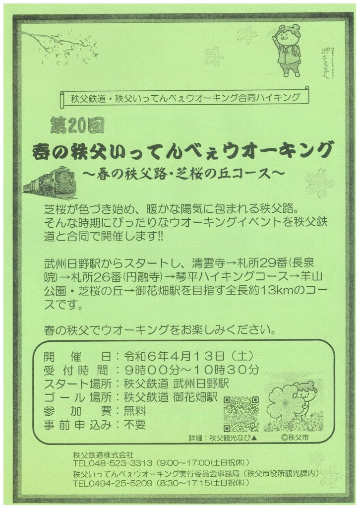 日に日に春の陽気になってきましたね。これからはウォーキングにぴったりの季節です。武州日野駅からスタートして、御花畑駅を目指す約13キロのコースです。しだれ桜や芝桜を愛でながら楽しくウォーキングはいかが?👣😊