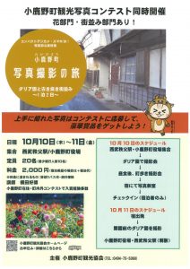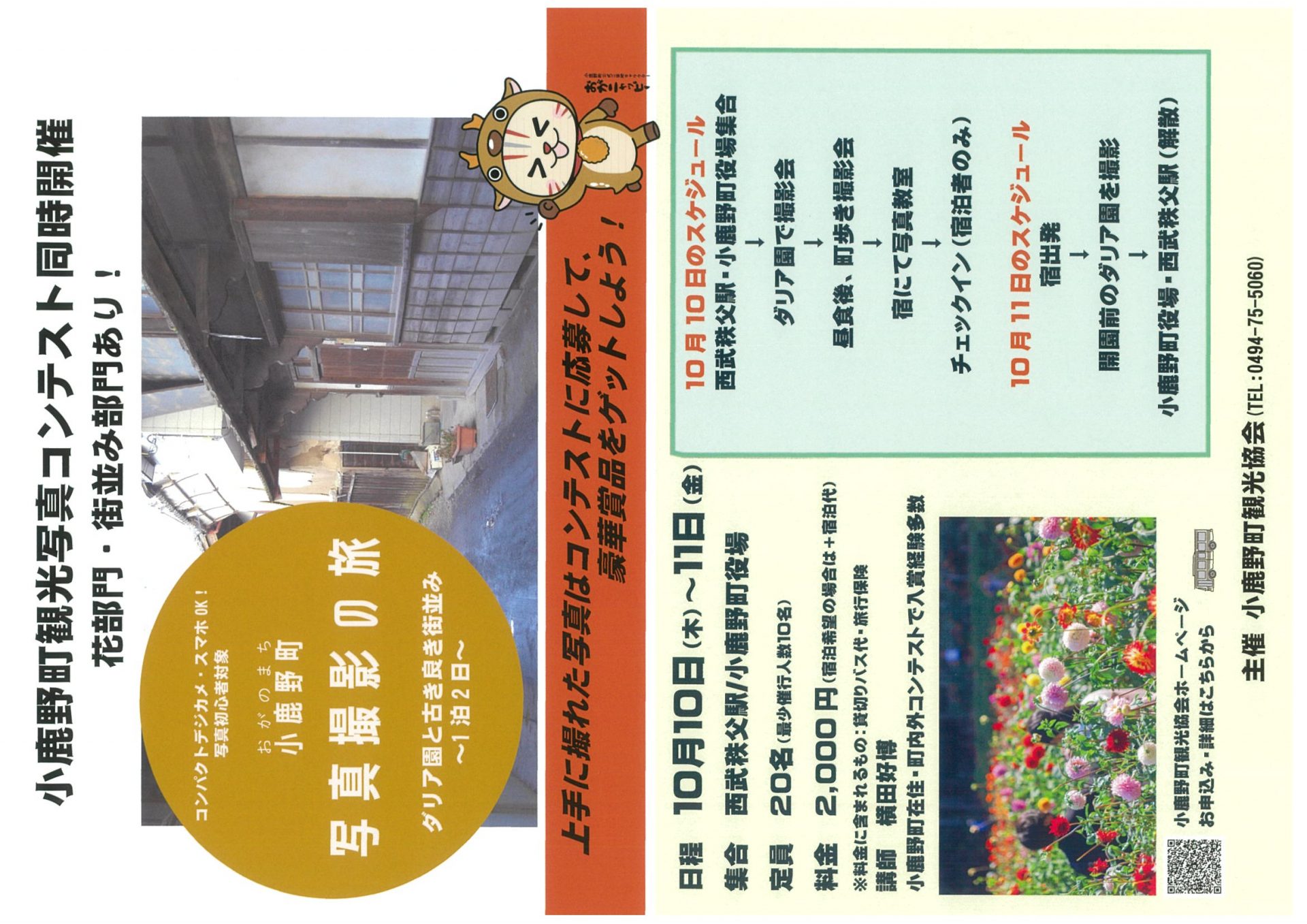 小鹿野町では、写真初心者を対象とした写真撮影の旅の参加者をただいま募集中です。ダリア園と古き良き街並みを訪ねる1泊2日の旅、なんと小鹿野町観光写真コンテストも同時開催です。
