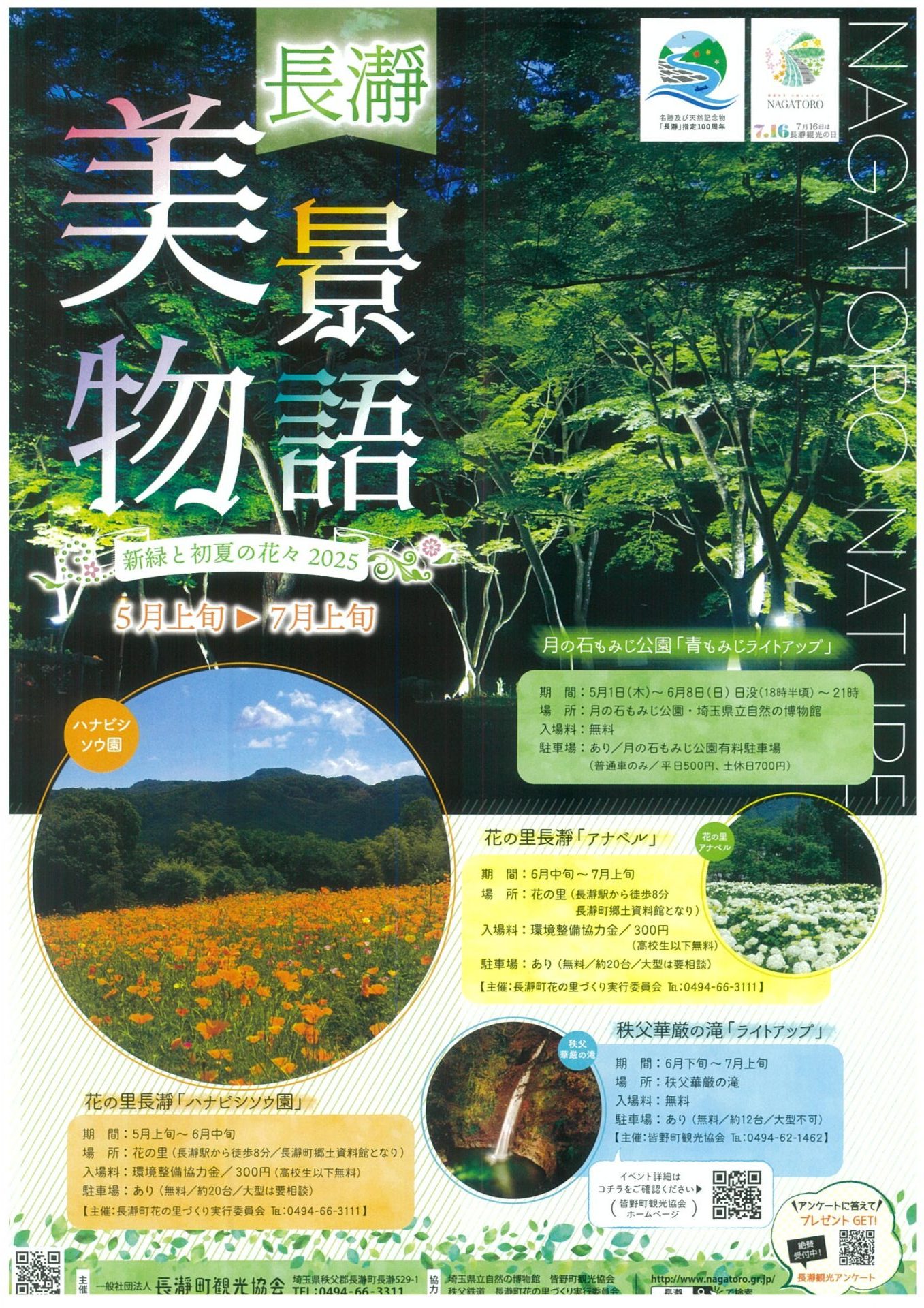 長瀞町の月の石もみじ公園では、ただいま青もみじのライトアップを行っております。心地よい風に吹かれて美しく光る新緑のライトアップを是非観に来てくださいね🔦🍃