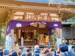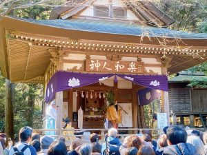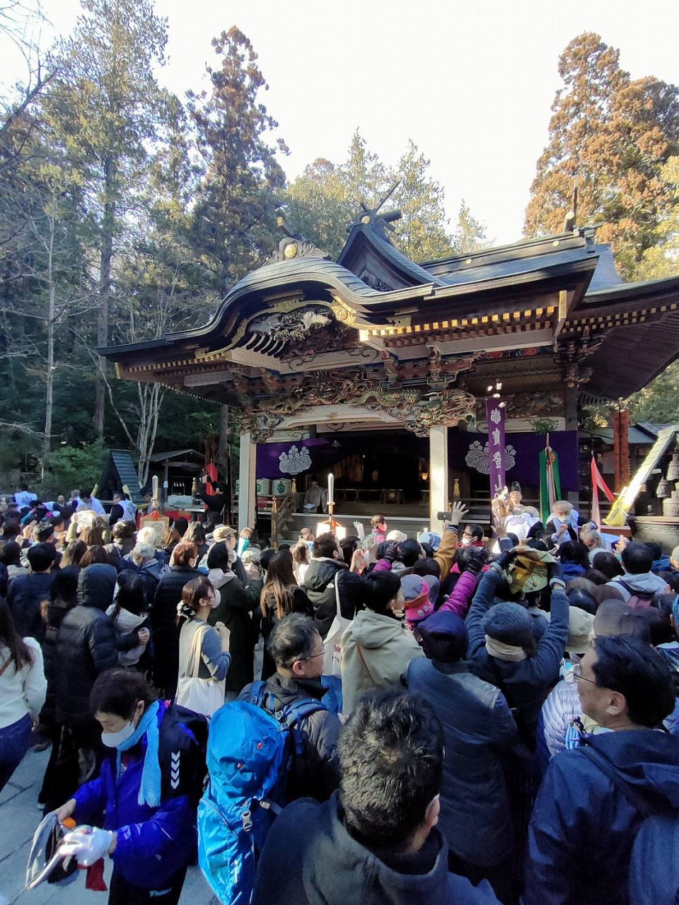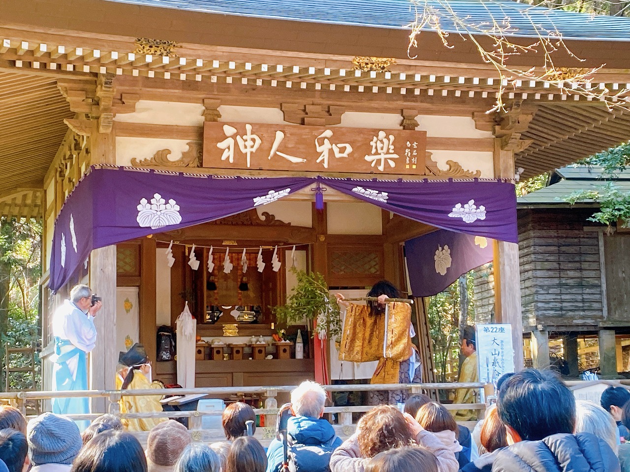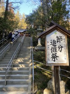 神楽殿では神楽が奉納されており、厳格な雰囲気が漂っていました。 3時より神事と豆まきが行われ、年男と年女の皆様から福のお裾分けをしていただきました!