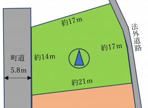 契約条件:契約不適合責任免責、現況有姿売買、実測精算取引、売買契約締結後に測量。