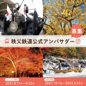 アンバサダー活動:Instagram上にて、秩父鉄道にて楽しんだ様子を3回投稿してください。