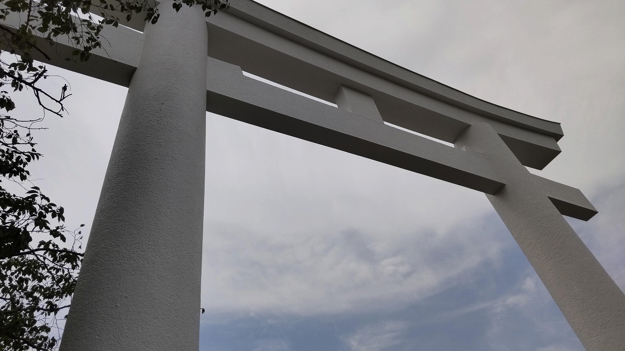 化粧直しされ真っ白な鳥居が登場しました。