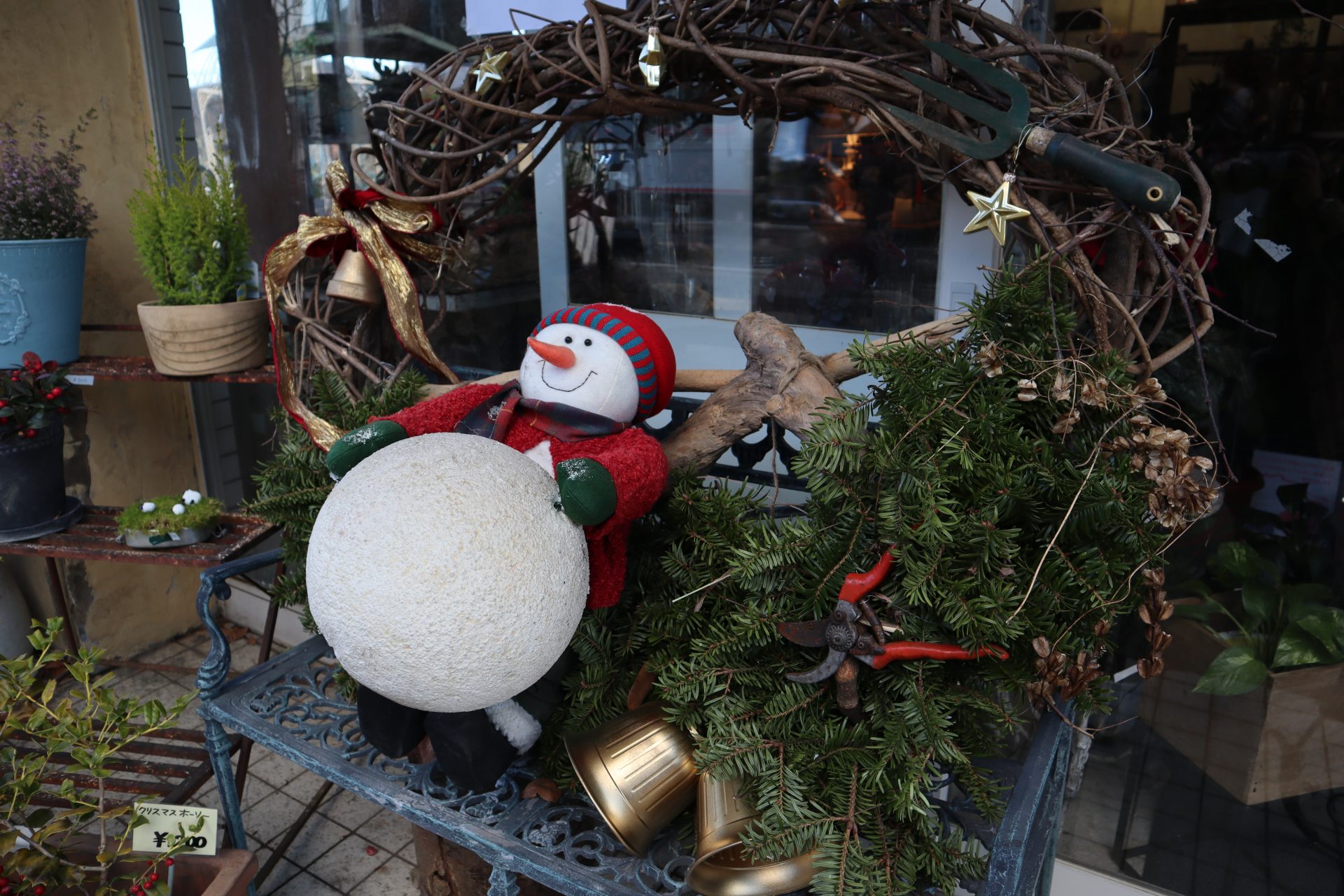 入り口では、雪だるまのオブジェとリースがお出迎え。