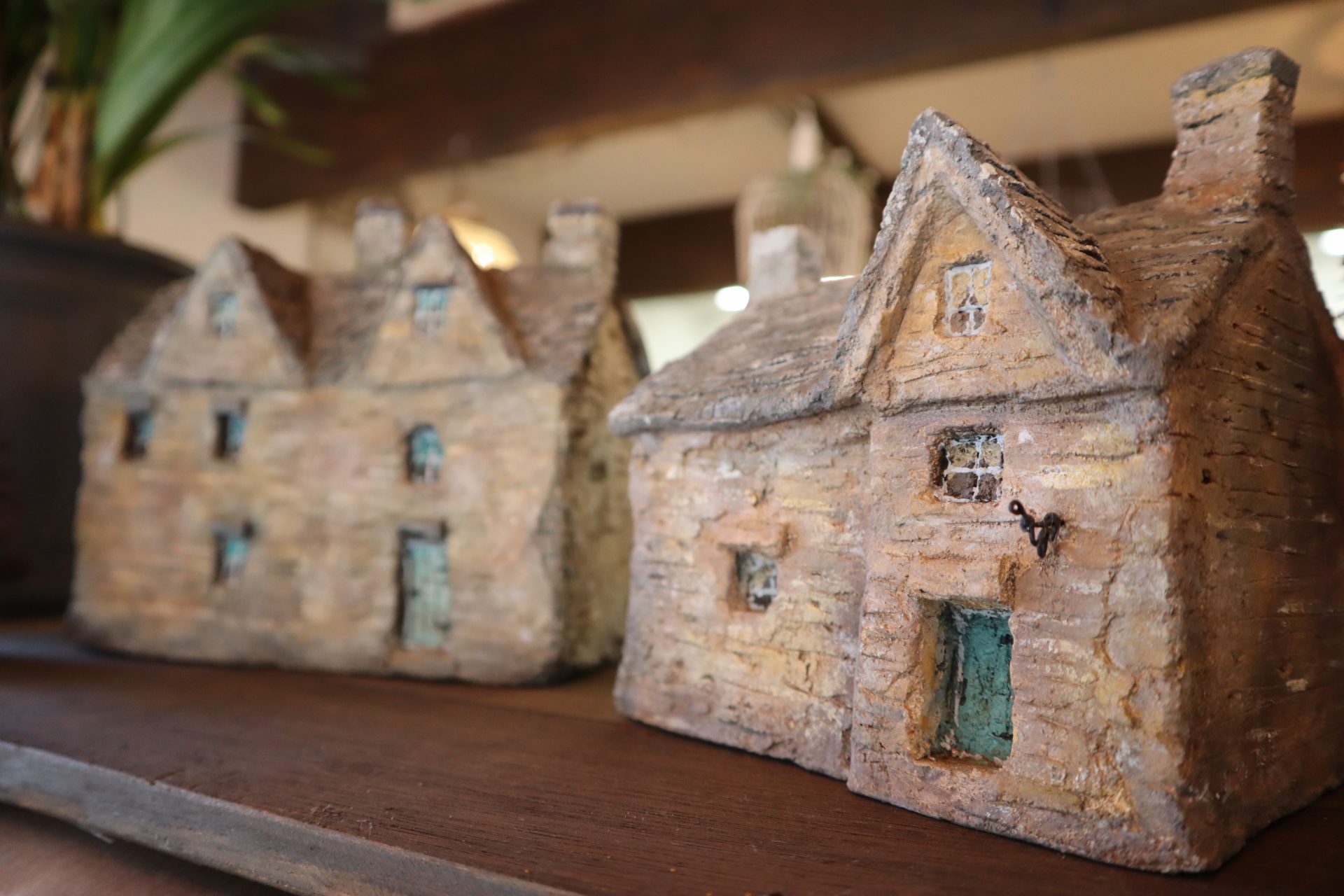 店内に入ると、モルタルでできたコッツウォルズ風のミニチュアハウスがあります。