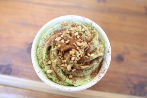 ホイップの甘みと黒みつ、きな粉が抹茶と合わさって濃厚な味わいでした。