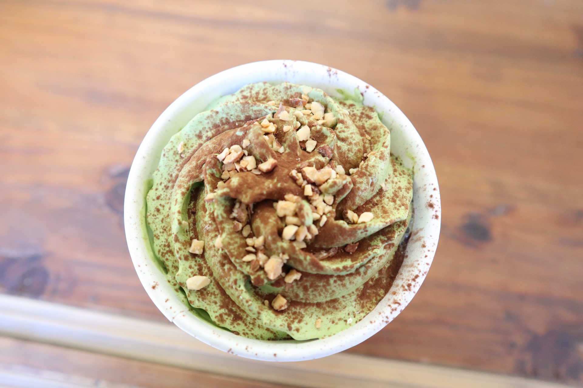 ホイップの甘みと黒みつ、きな粉が抹茶と合わさって濃厚な味わいでした。