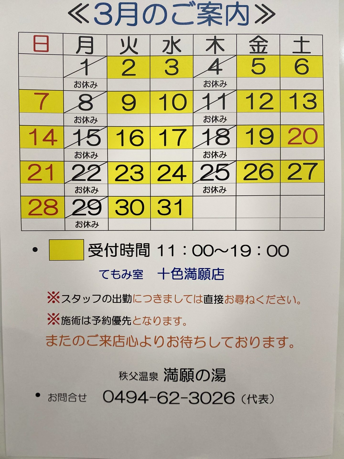 本日ご紹介するのは、「秩父温泉満願の湯」にある「てもみ処 十色満願店」です。