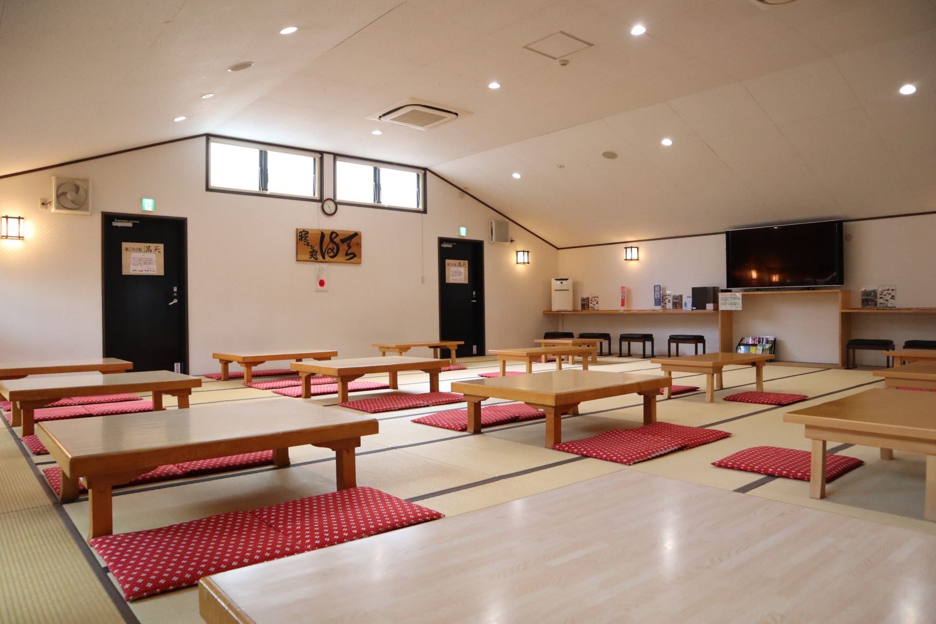 大広間「来楽の間」では、お風呂あがりなどにちょっと一息休憩ができます。