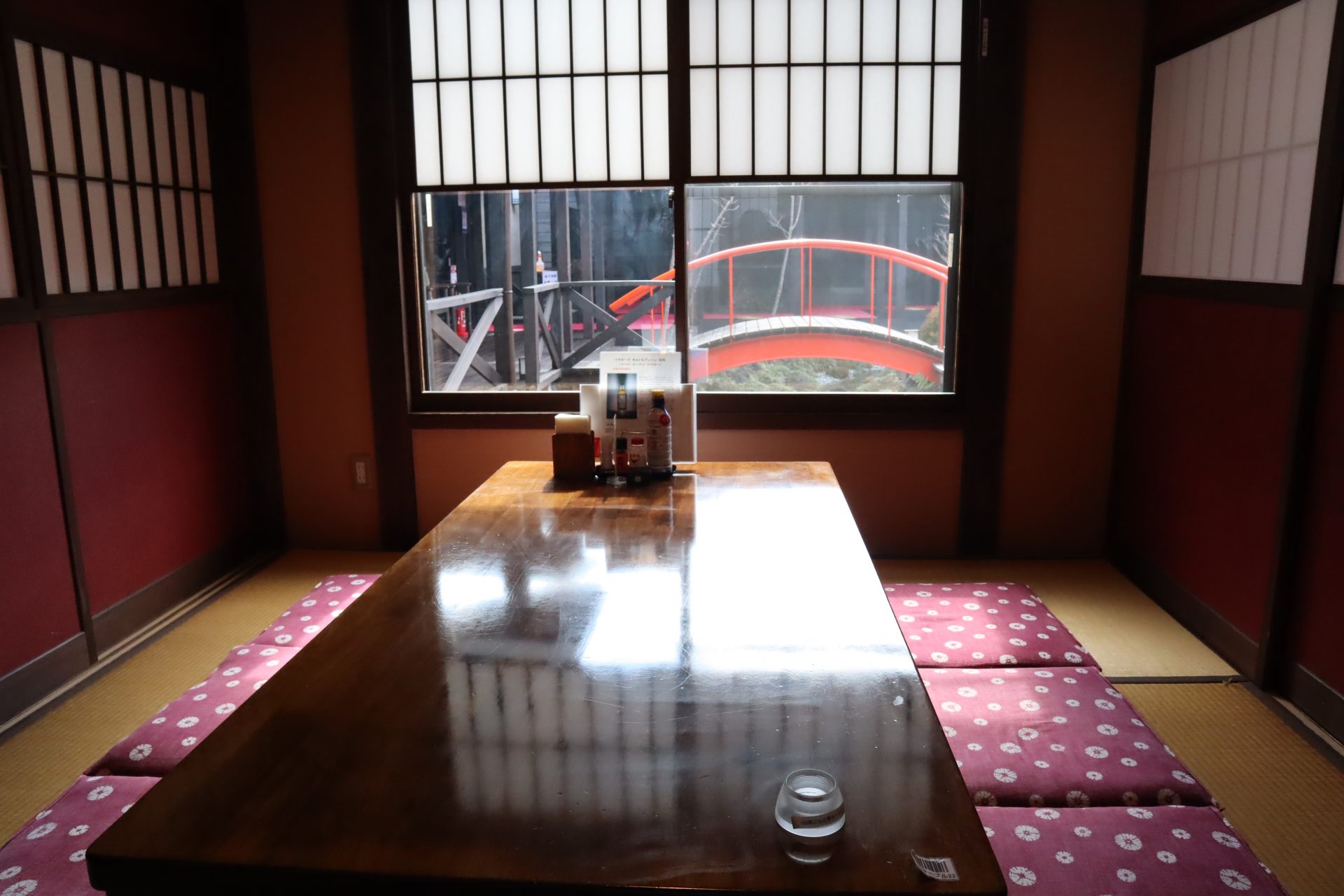 他にも個室になっている食事スペースもあり、畳の部屋で外の景色を楽しみながら