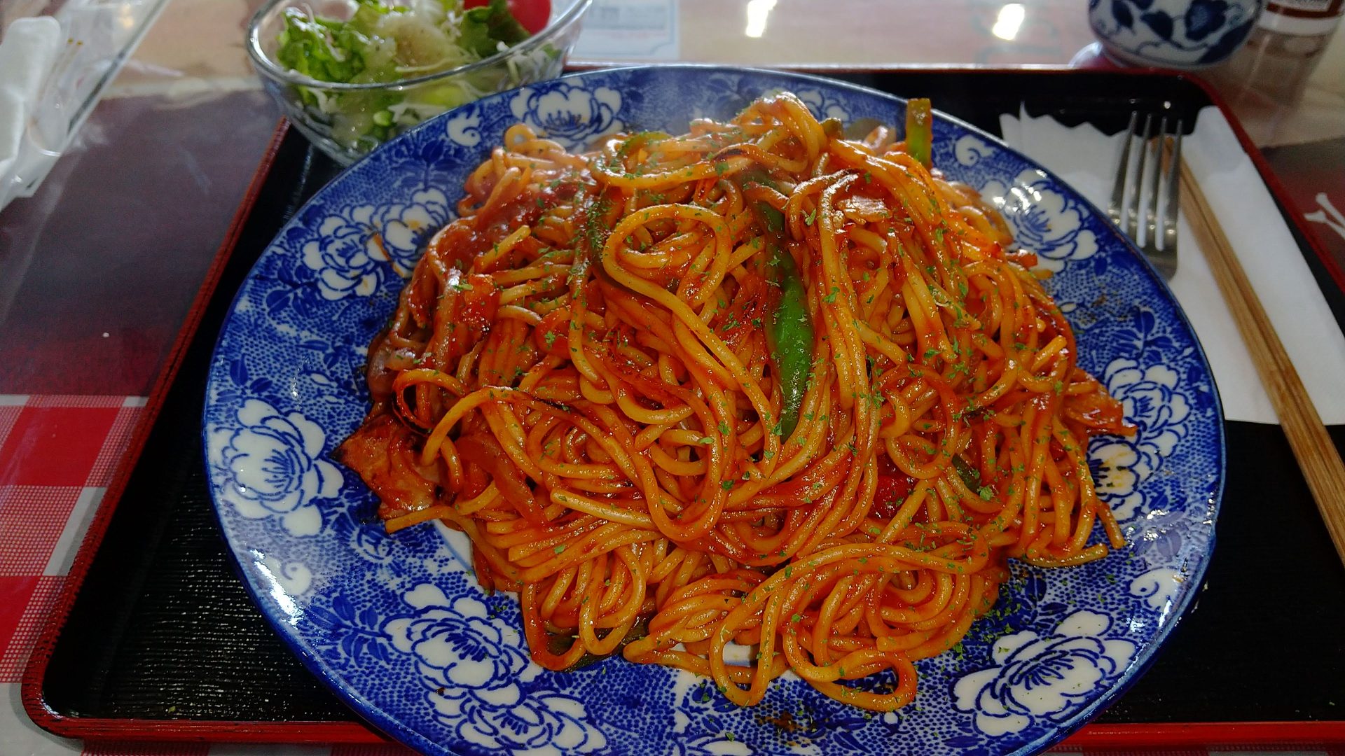 食堂の人気メニューは「ダムカレー」と「ナポリタン」です。