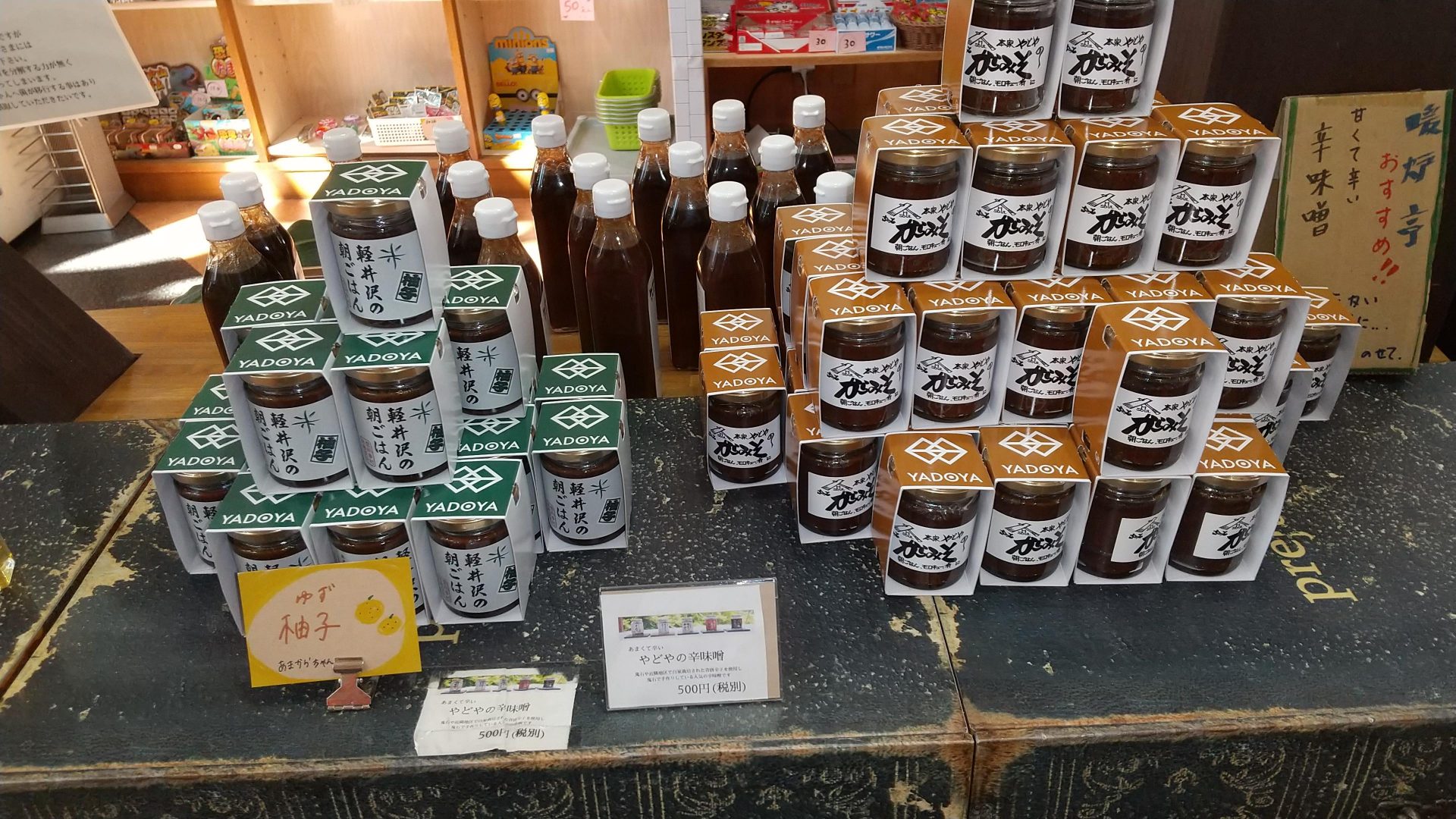 このお店オリジナル商品の「から味噌」「はちみつ」等が販売されています。