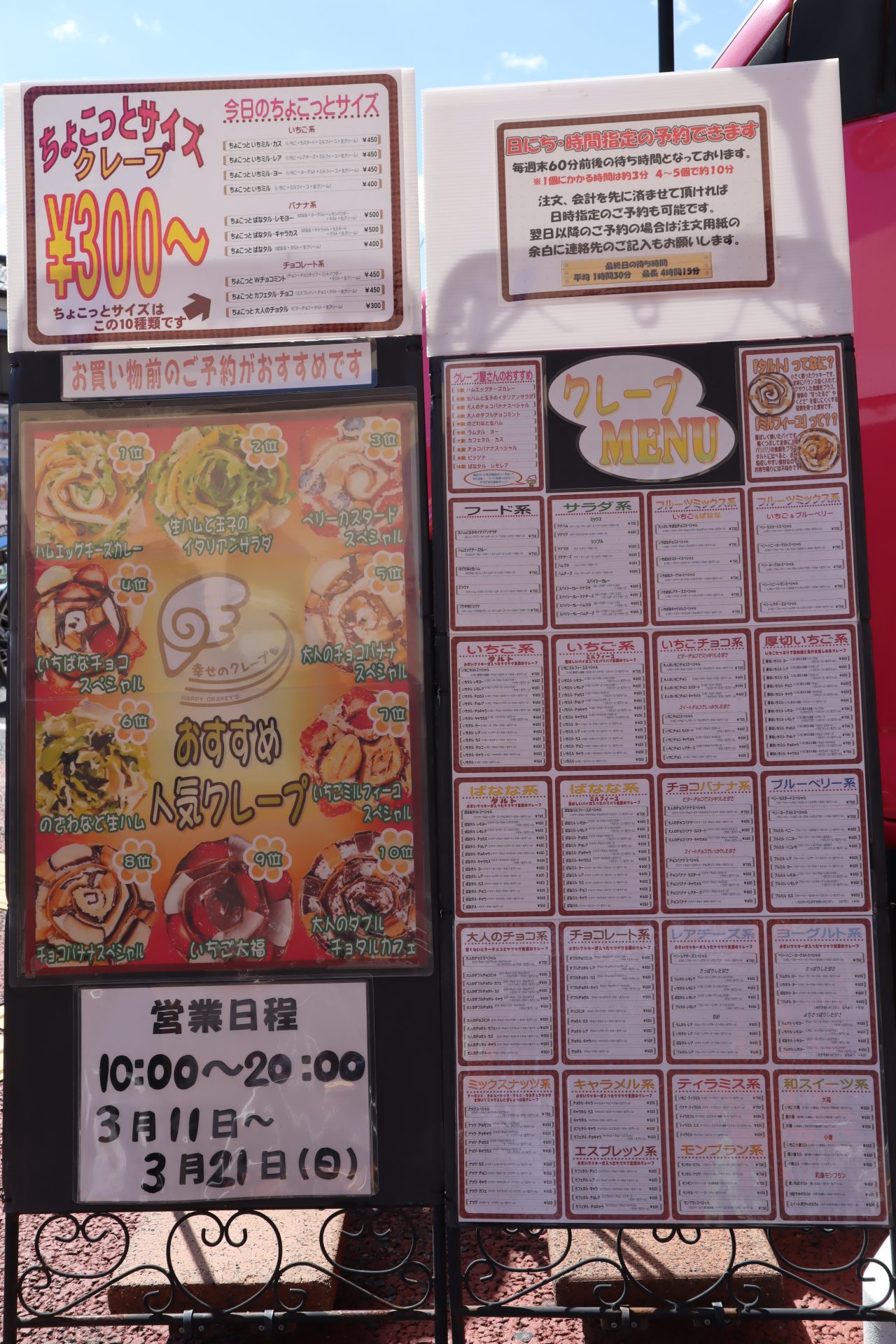 ヤオコーさんでお買い物をしてからクレープを受け取る時間にはちょうどいい時間ではないでしょうか。