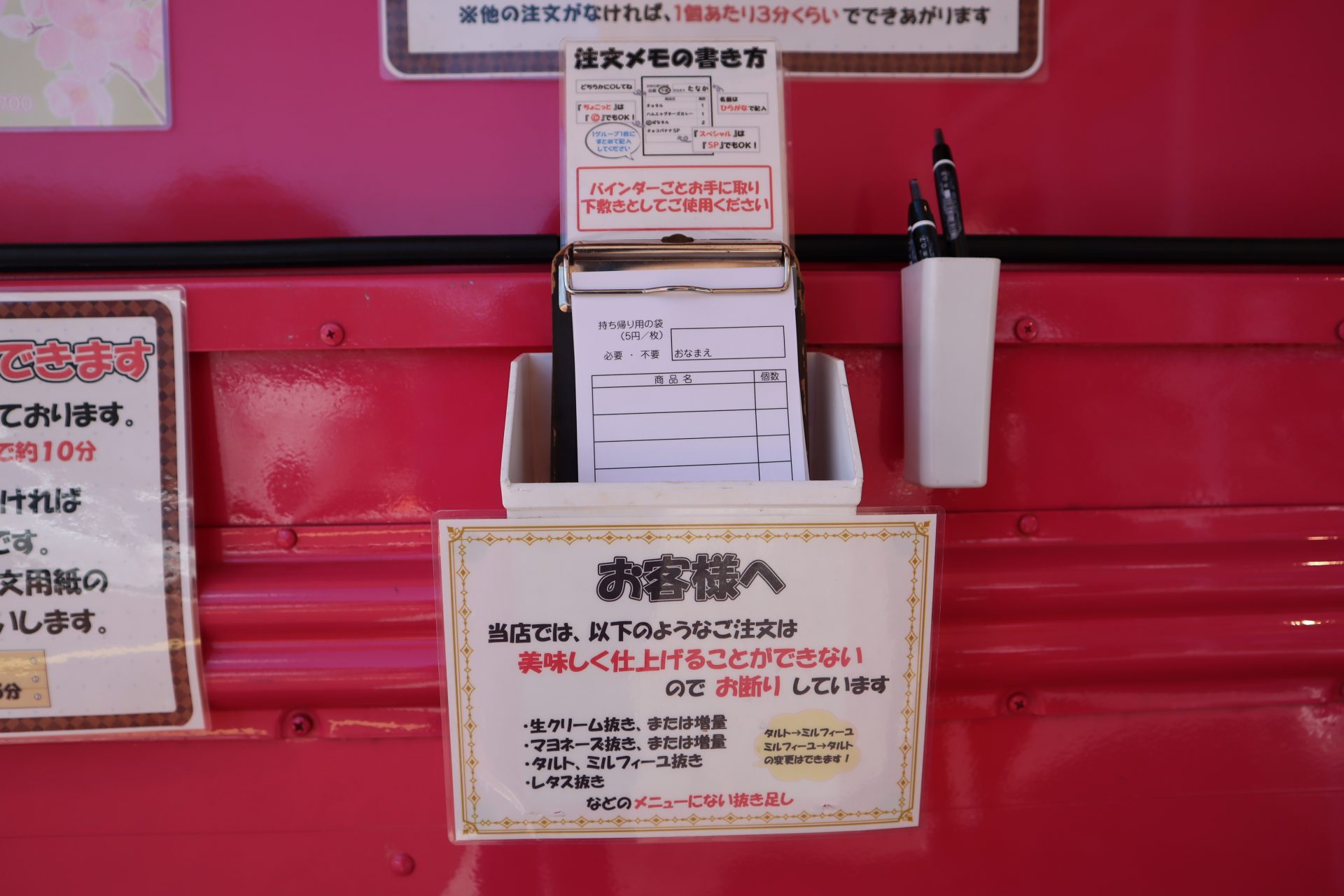 クレープを購入する際は注文票に記入して、お会計をします。
