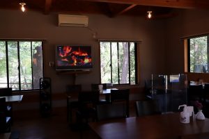 焚火レストランという名の通り、店内には焚火ストーブや焚火の映像が流れています。