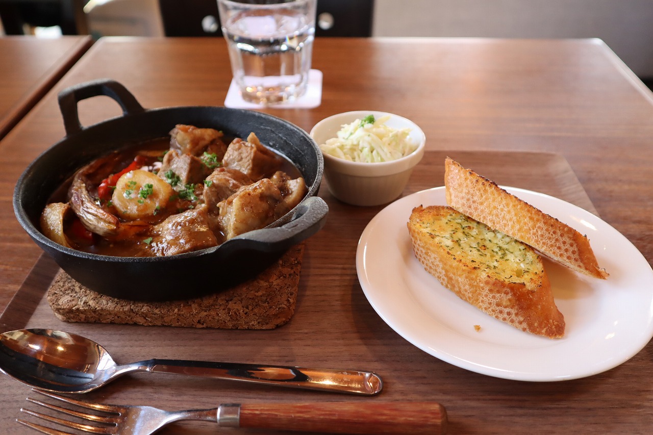 ・ビーフシチュー・ガーリックトースト・コールスロー・ドリンク付き