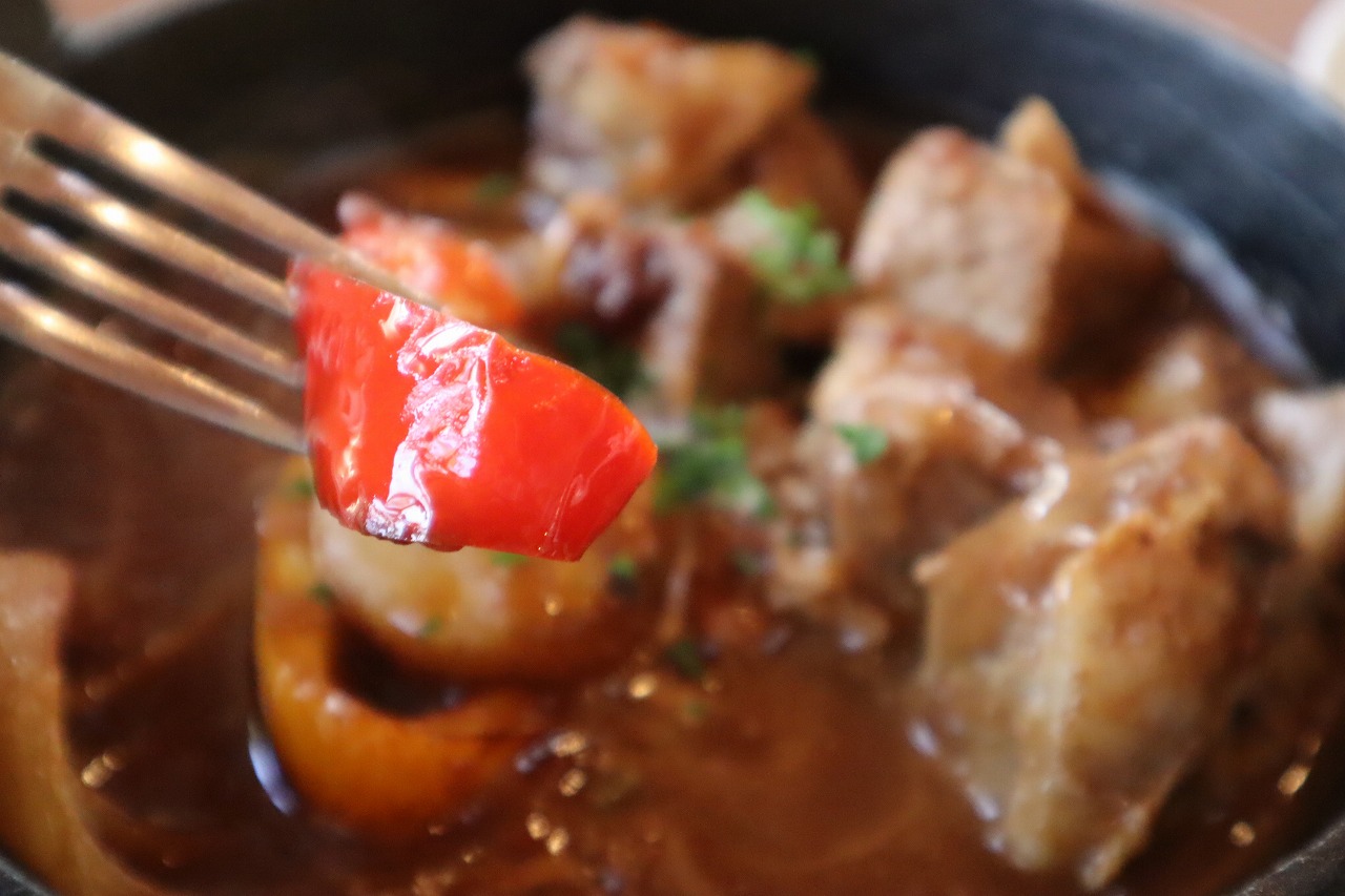 辛さが少しあります、全体的にはコショウがきいていて、舌が少しピリッとします。