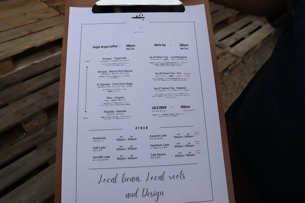 コーヒーはシングルオリジンが全部で5種類あり、メニュー表の上にいくほど紅茶に近く