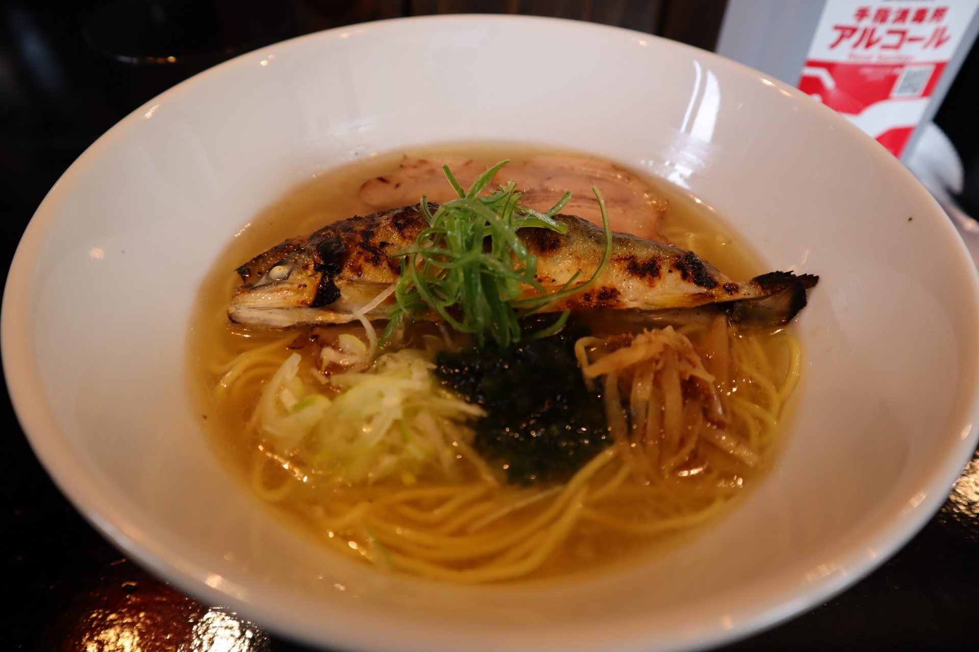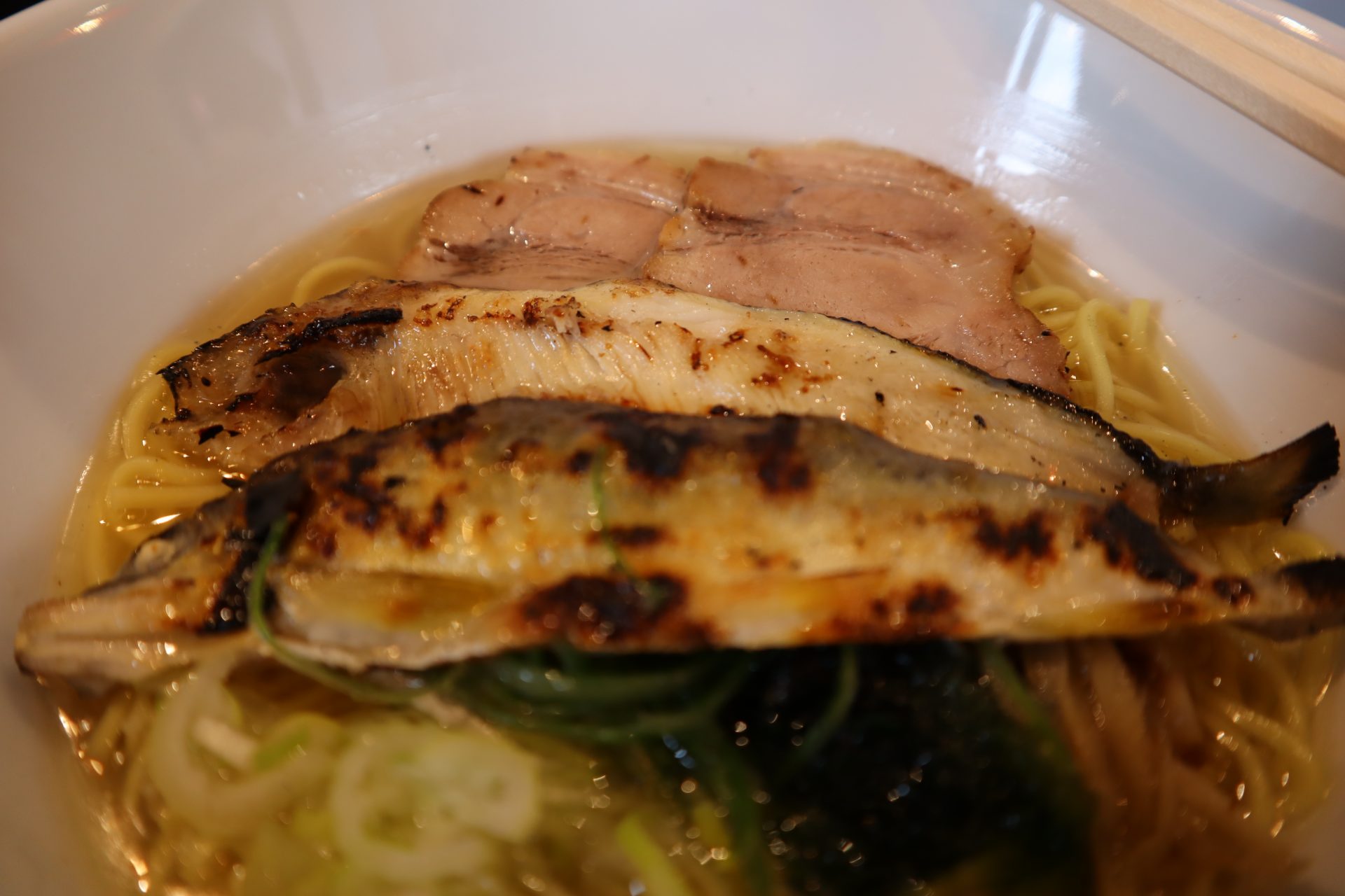 麺の上には、あぶった鮎とチャーシューがのっています。