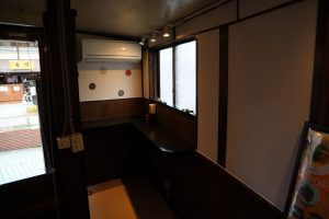 店内はカウンター席が5席と、別棟の立ち食いカウンターがあります。