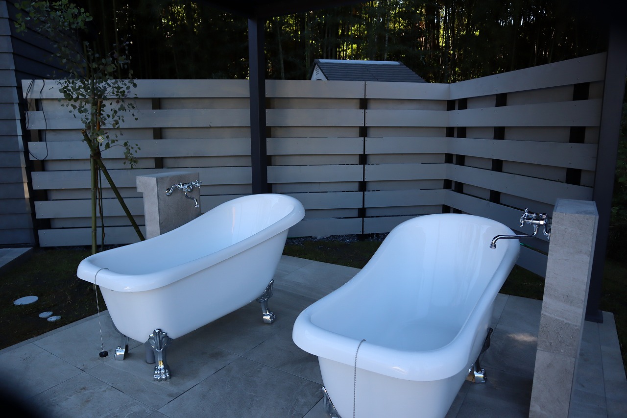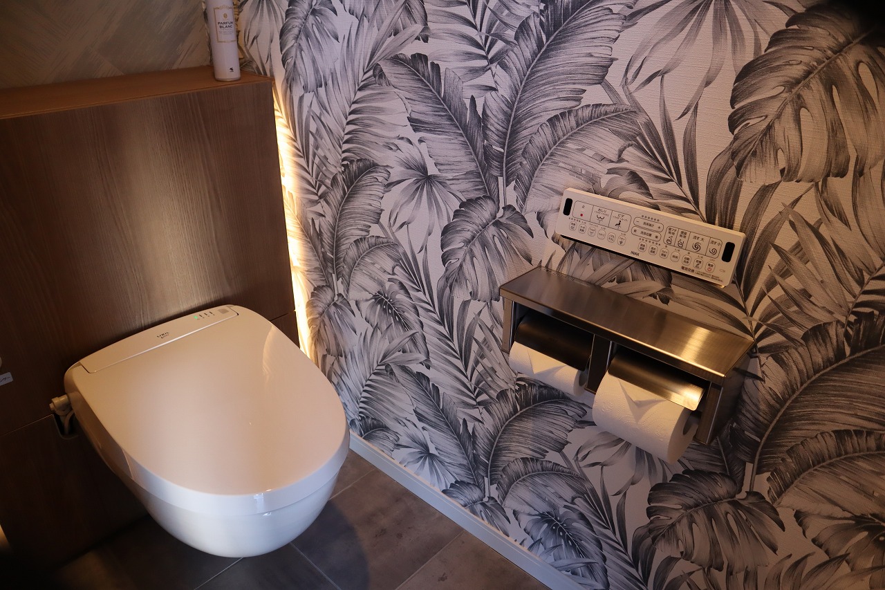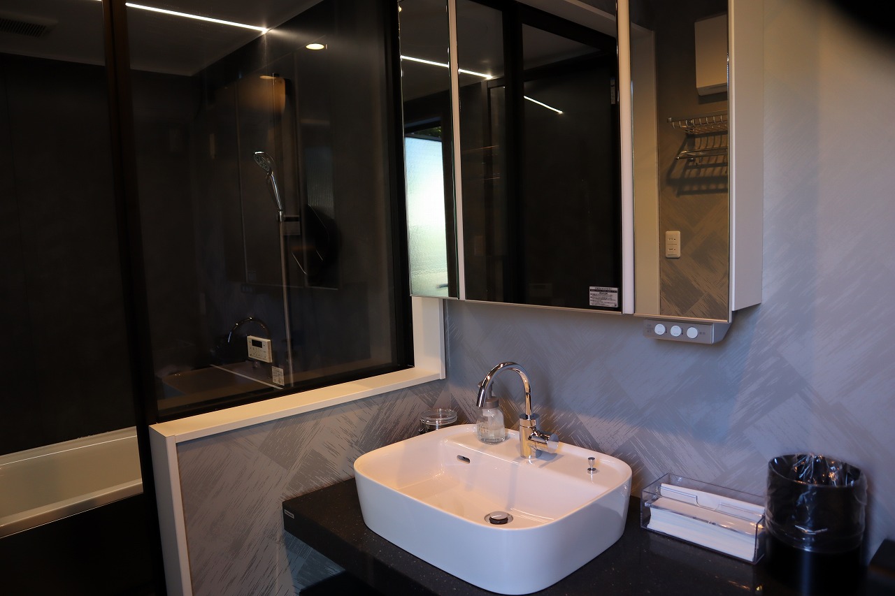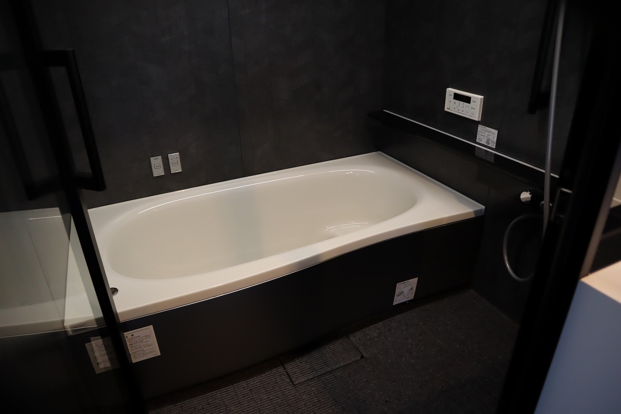 バスルームは黒をベースとしたシックな雰囲気となっております。