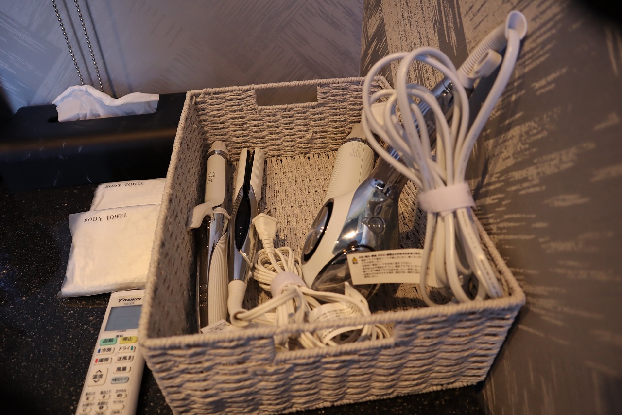 ドライヤーだけでなくヘアアイロンなども準備されております。