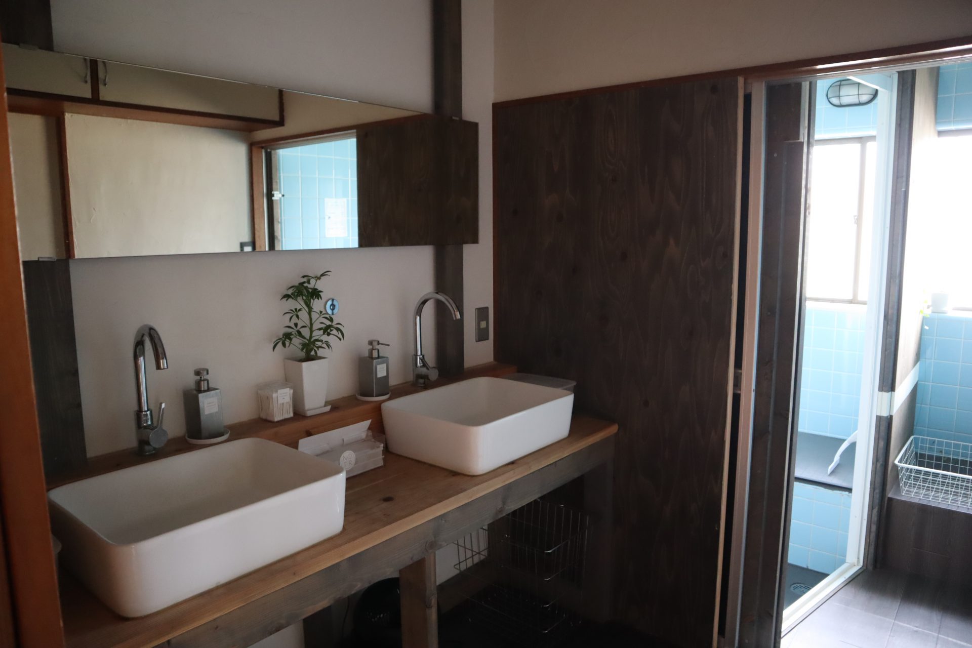 お風呂はシャワーのみの利用になっており、洗面台はふたつあります。